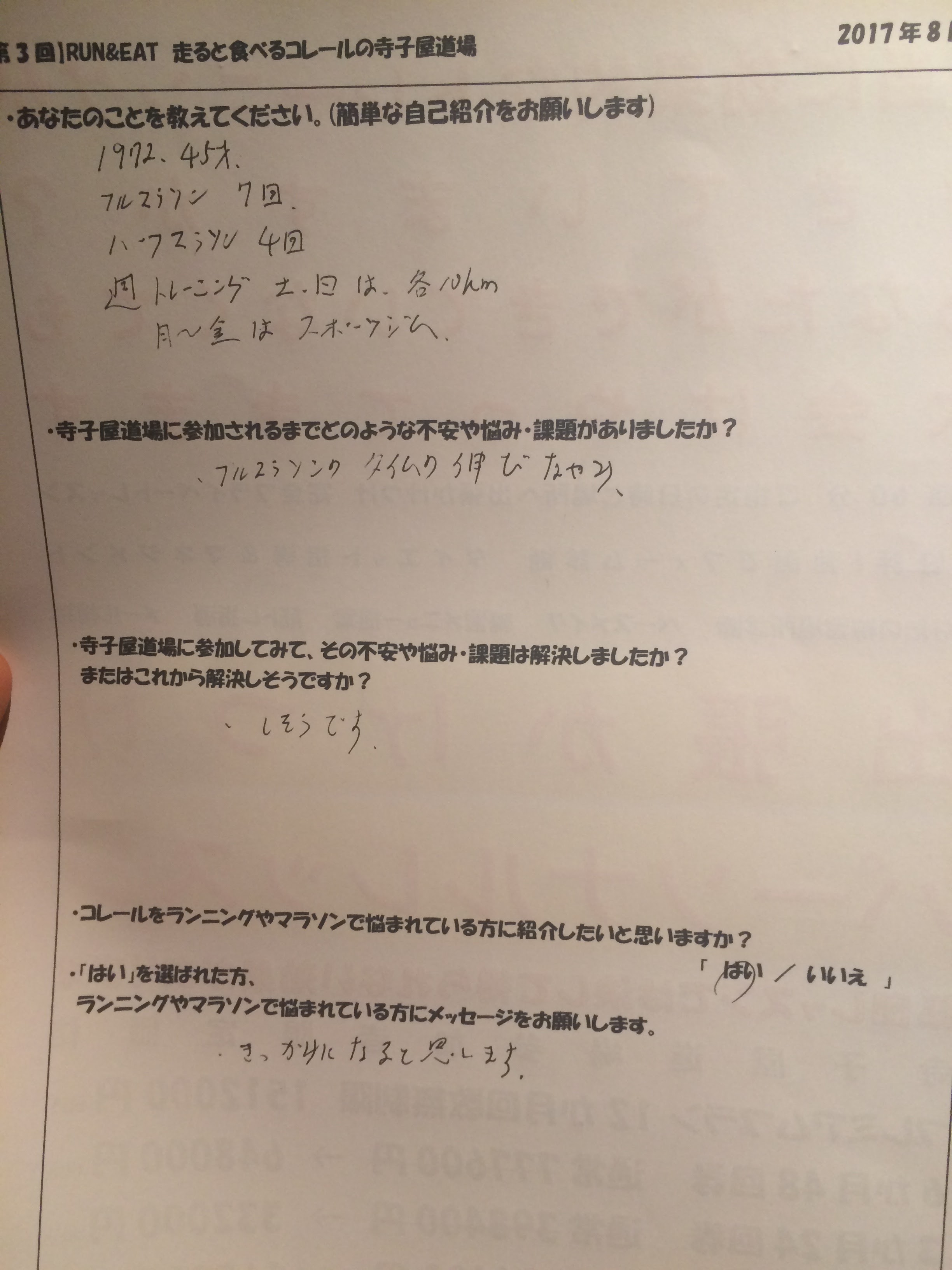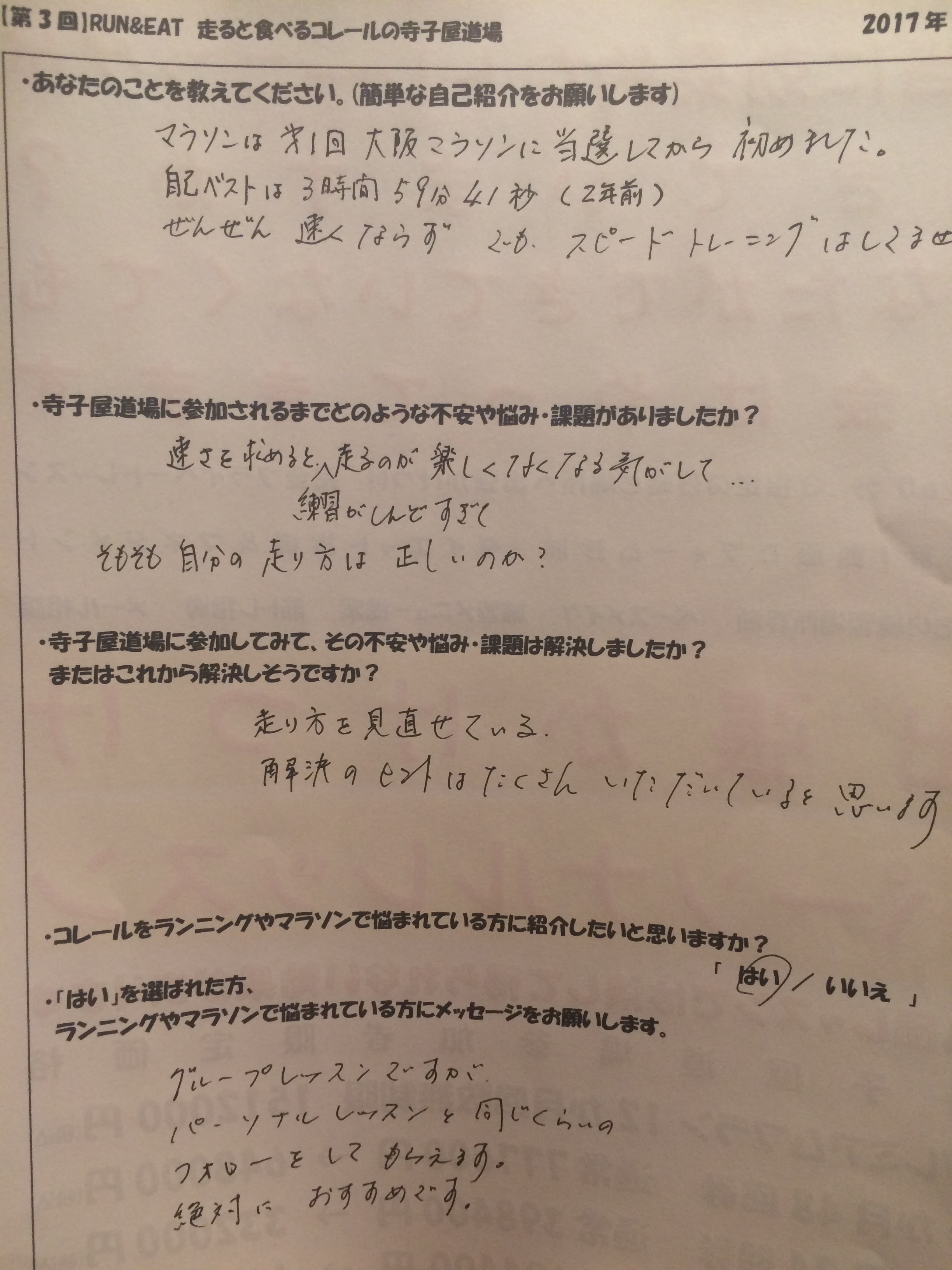 「マラソンを完走できる・できない」や完走タイム、走れる距離の長さなどは特に関係なく学んで頂けます。