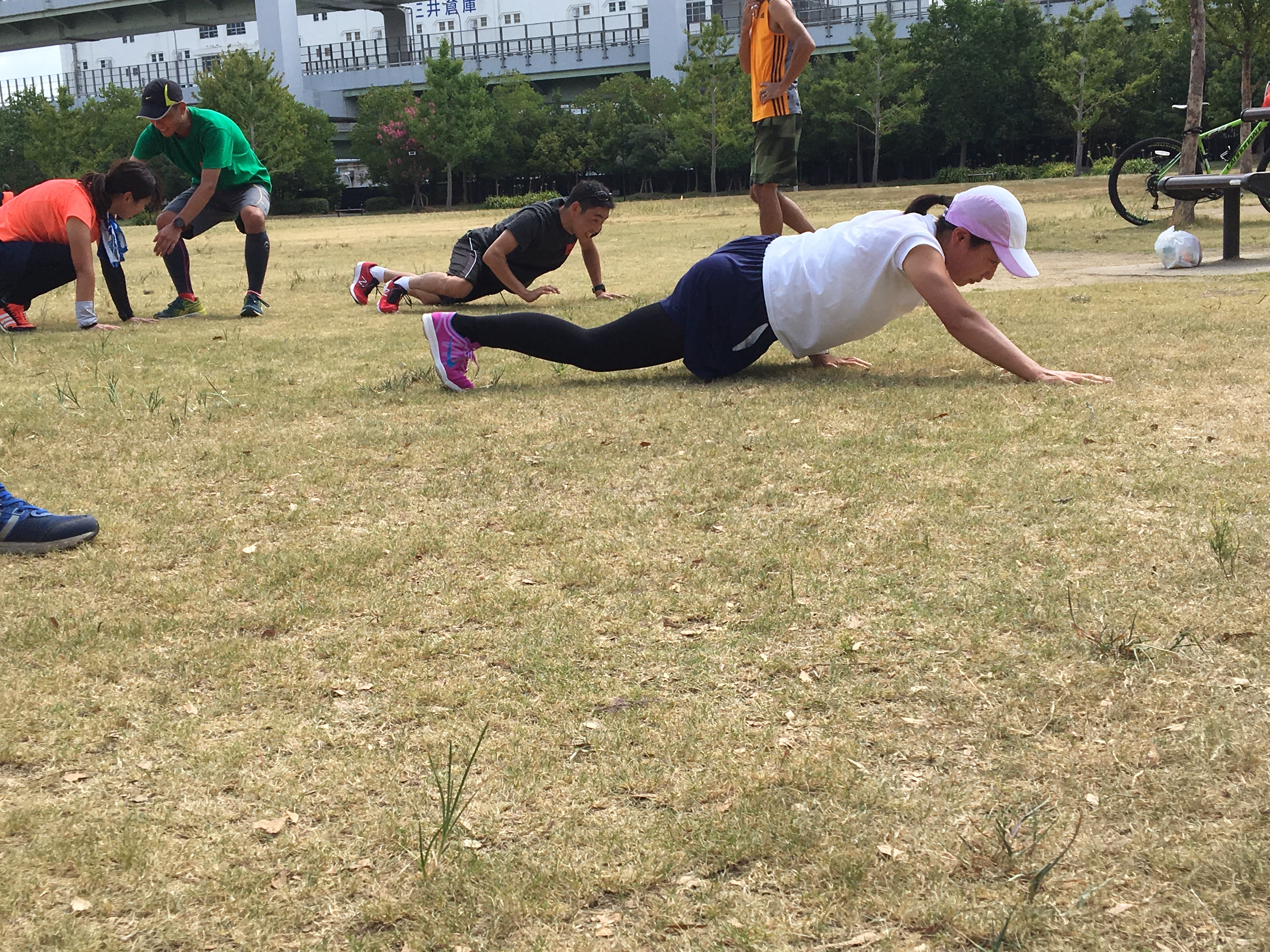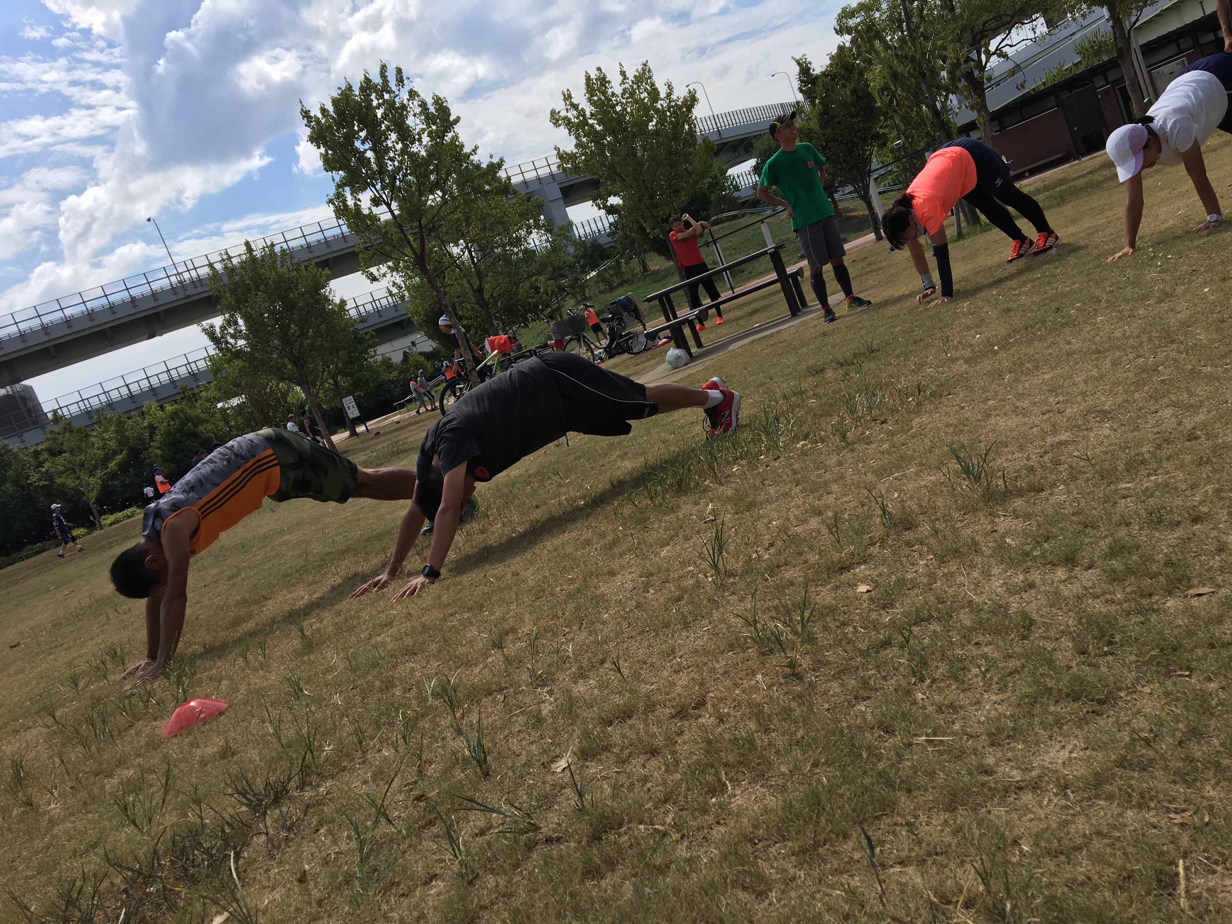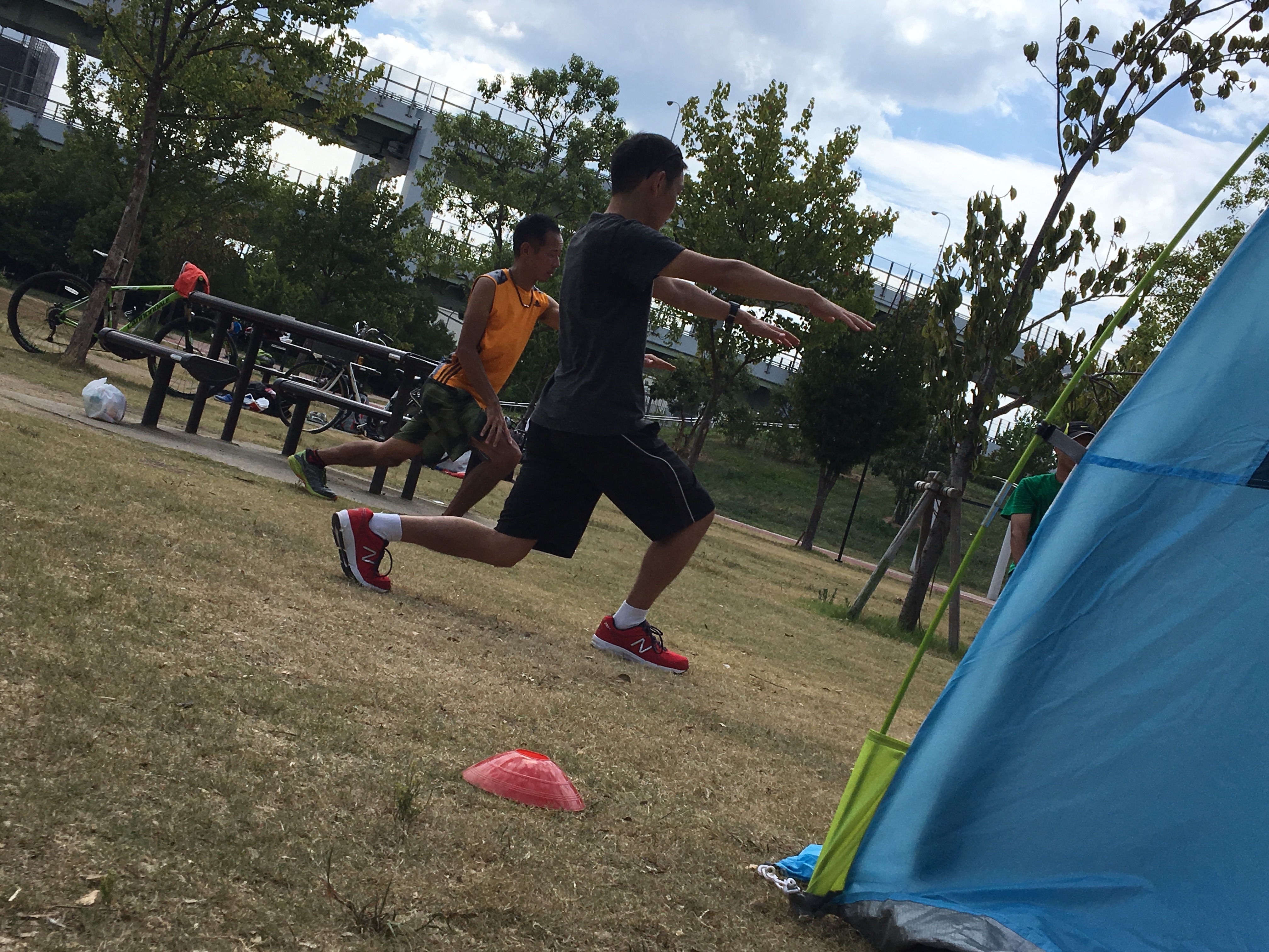 ランニングの練習中にお子様は<姿勢分析&運動能力アップトレーニング>を実施します。(無料)