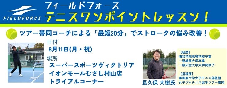 【8/11開催!】ツアー帯同コーチによるテニスワンポイントレッスン by フィールドフォース 受付終了
