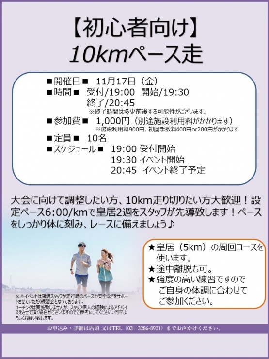 【初心者向け】10kmペース走 受付終了
