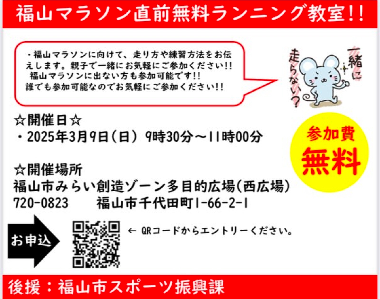 なお福山マラソン参加されない方でも誰でも参加可能ではありますのでお気軽に参加ください。