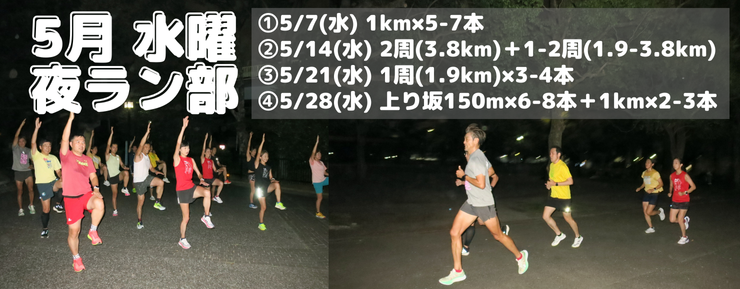 5/28(水) 上り坂150m×6-8本+1km×2~3本: -