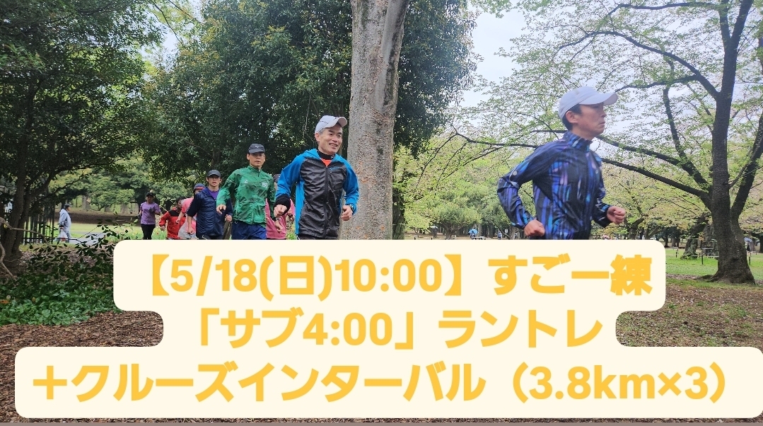 【5/18(日)10:00】すごー練「サブ4:00」ラントレ+クルーズインターバル(3.8km×3) 受付終了