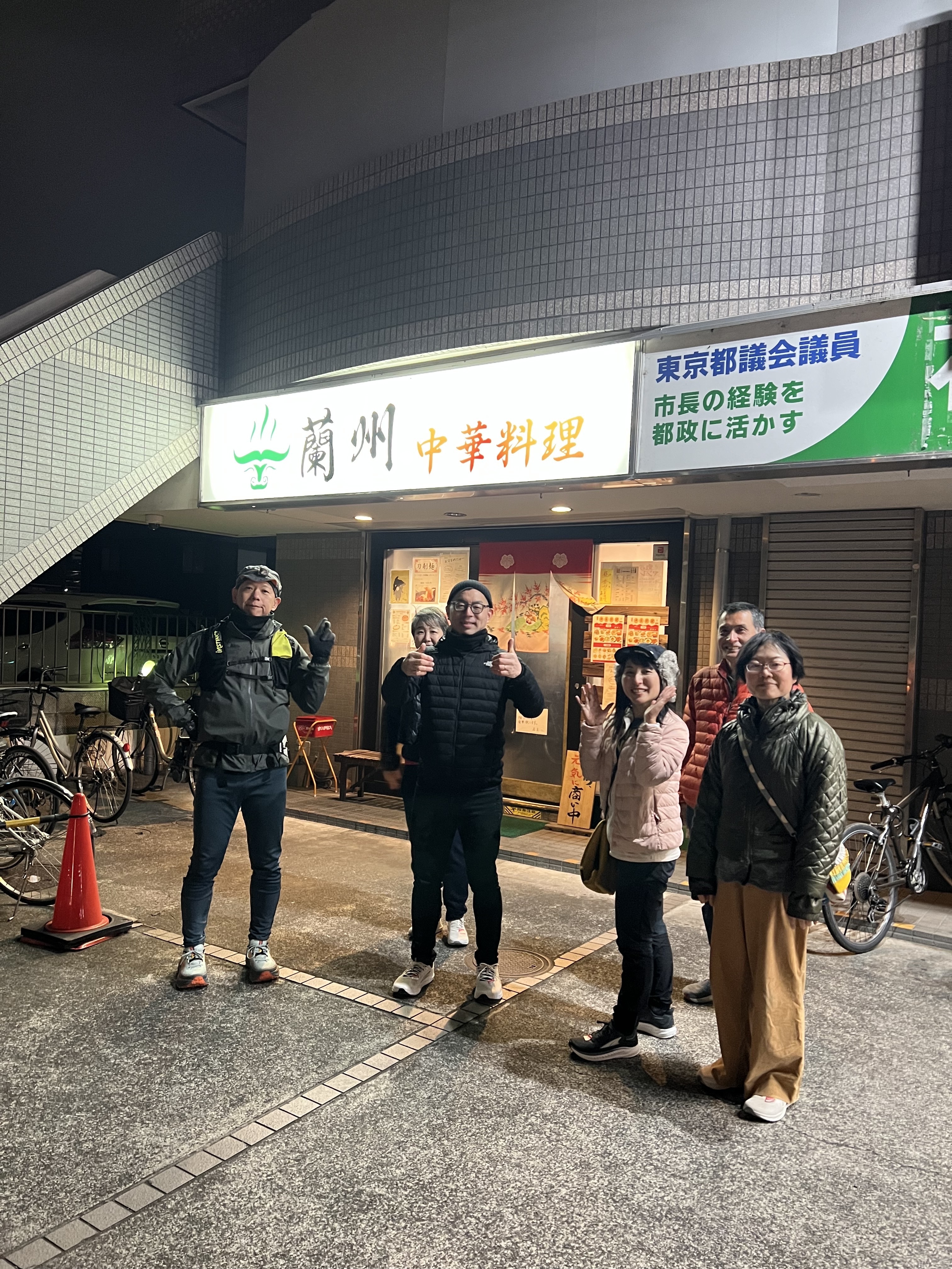 トークショー終了後、ランは石川弘樹さんとストライドラボ多摩のタメさん、ウォークはアルトラジャパン代表福地孝さんとストライドラボ多摩ジュンさんに分かれて走って、歩いてパーティー会場・中華蘭州に移動。そのまま1周年記念パーティーを行ない、現地で解散となります。
