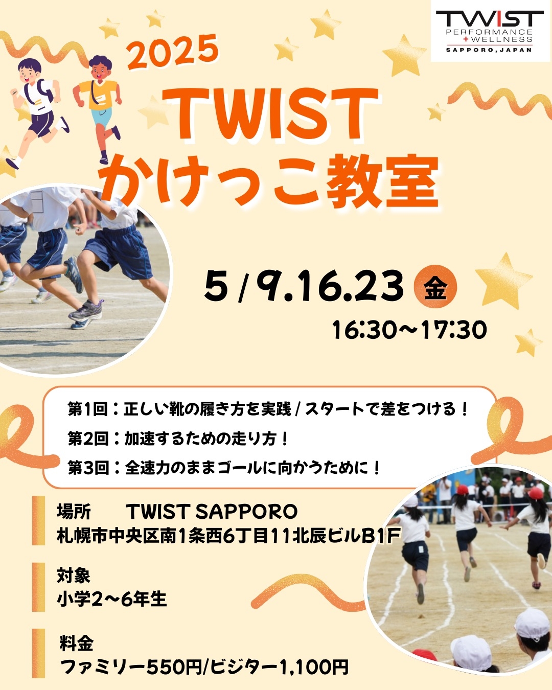 そこで、今回TWISTでは〈かけっこ教室〉を開催いたします。