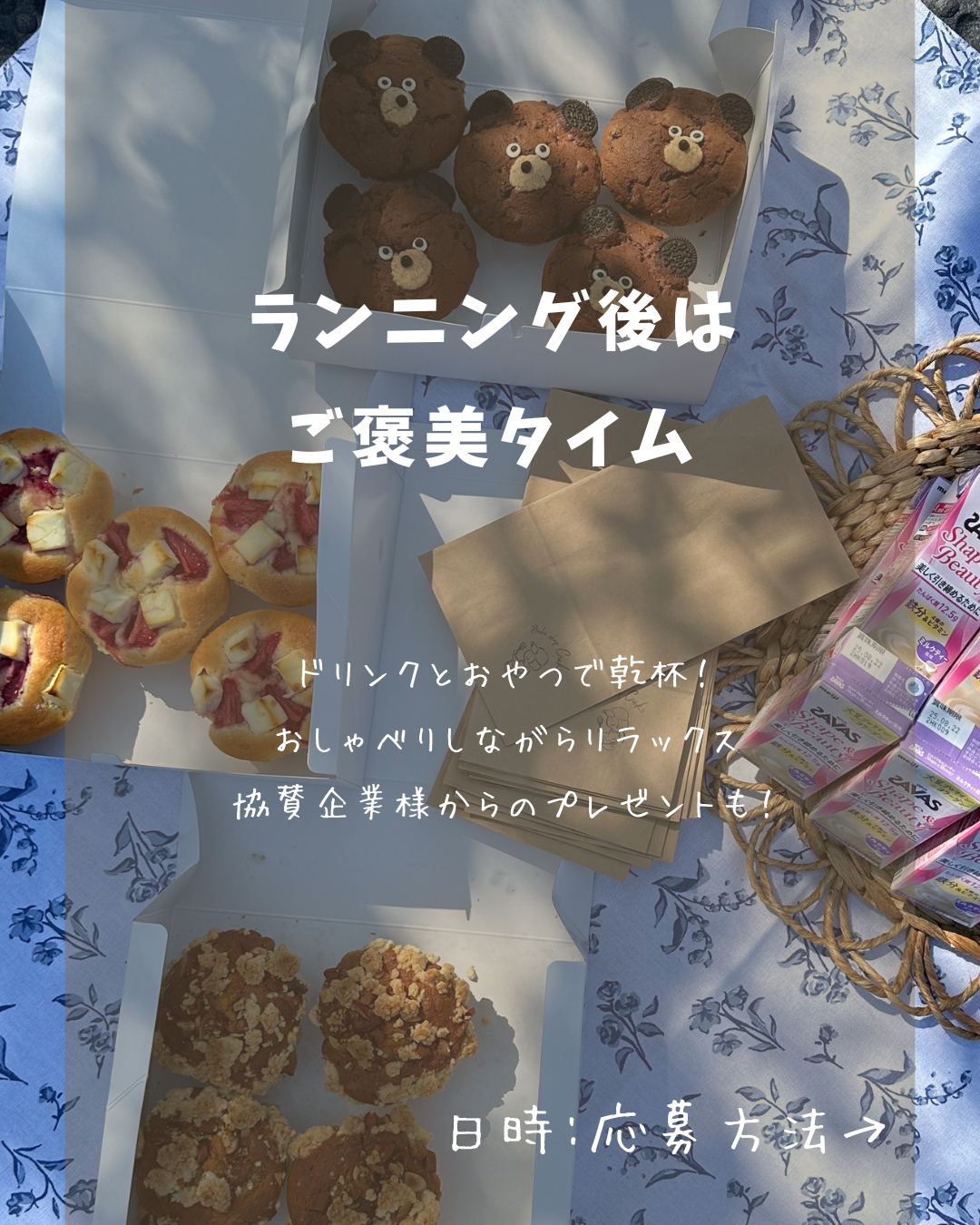ランニング後には、ドリンクとおやつで「乾杯タイム」も♪