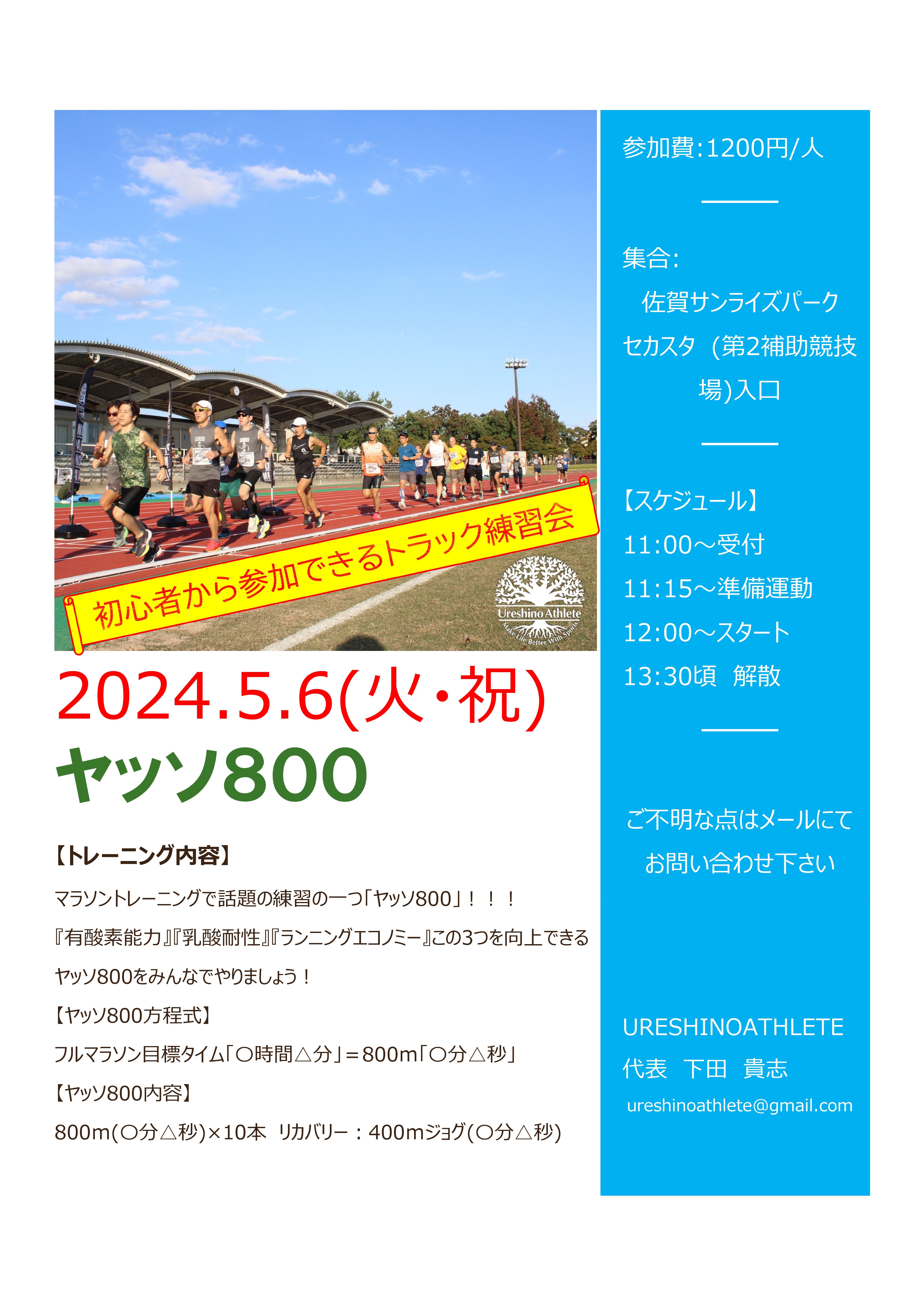 マラソントレーニングで話題の練習の一つ「ヤッソ800」!!『有酸素能力』『乳酸耐性』『ランニングエコノミー』この3つを向上できるヤッソ800をみんなでやりましょう!
