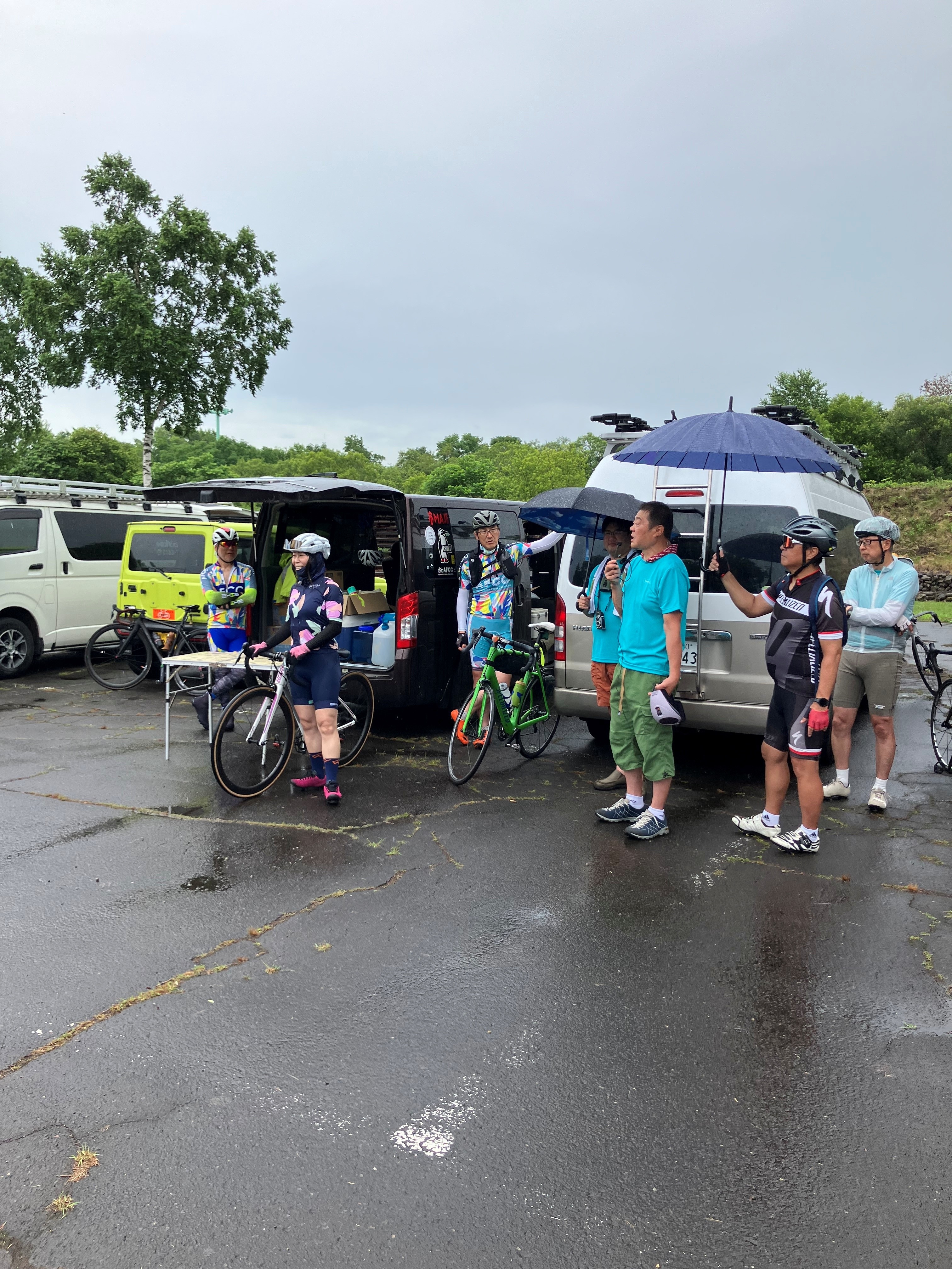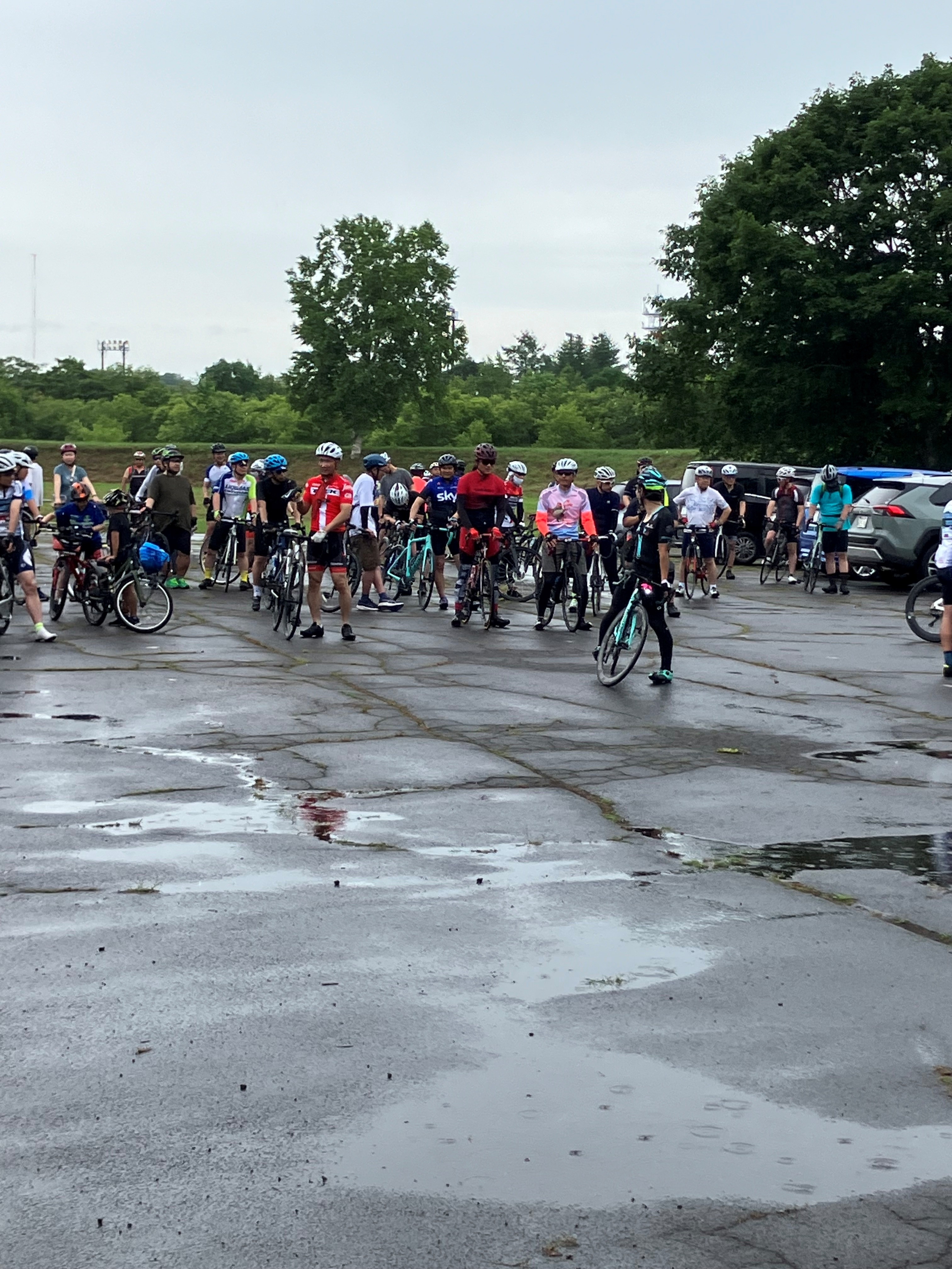 小雨の降る中、次々と参加者が集合しました。皆少し心配そうな表情を浮かべていましたが、実行委員長の「午後から晴れますよ!」という励ましの言葉に期待を膨らませ、いよいよ『ぐるっと中標津ライド』がスタートしました。
