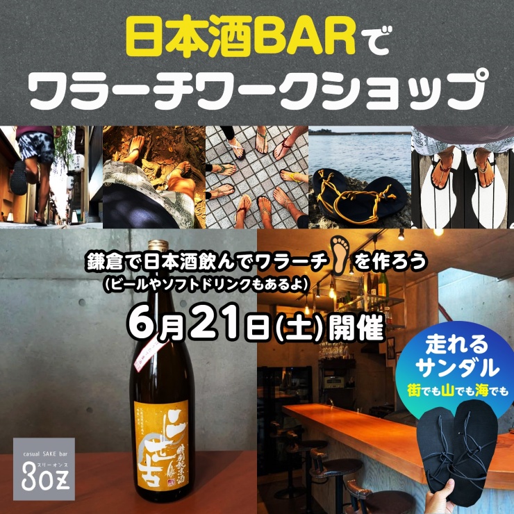 【6月・鎌倉】日本酒BARでワラーチワークショップ開催!鎌倉 Casual Sake BAR 3oz 受付終了