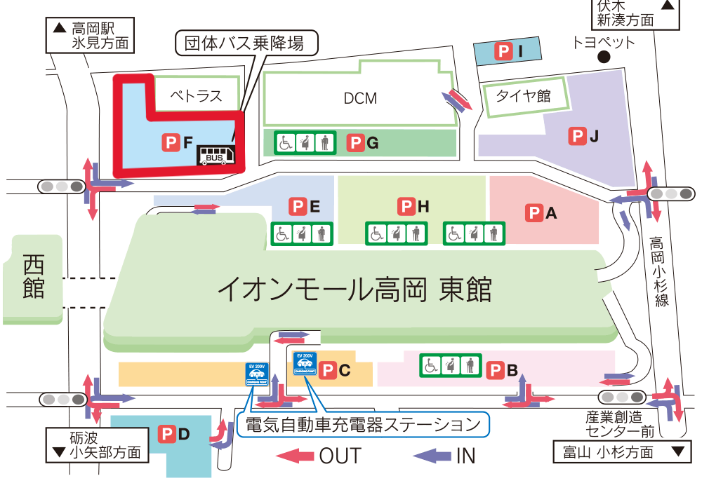 イオンモール高岡 イオンホール(富山県高岡市下伏間江383)発着