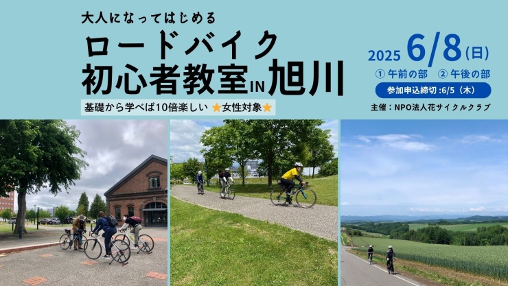 【'25 6/8(日) 旭川開催】大人になってはじめるロードバイク初心者教室*女性対象 受付終了