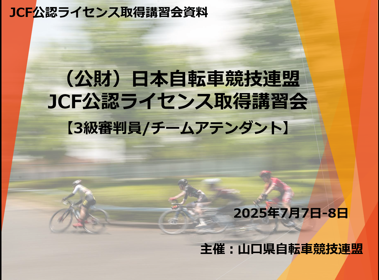 (公財)日本自転車競技連盟公認資格の、第3級審判員またはチームアテンダント資格の取得講習会を、オンライン講義方式で開催します。