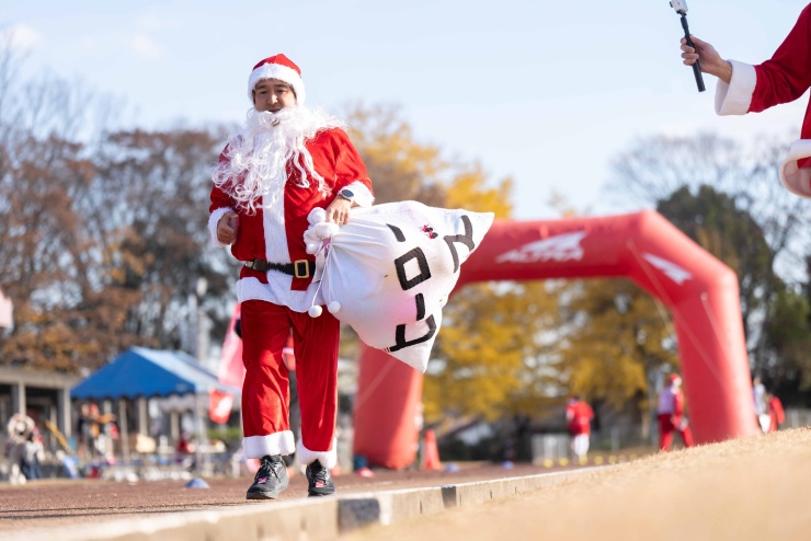 大会終了後に市内の団体に寄付することで参加者は本物のサンタクロースになります。