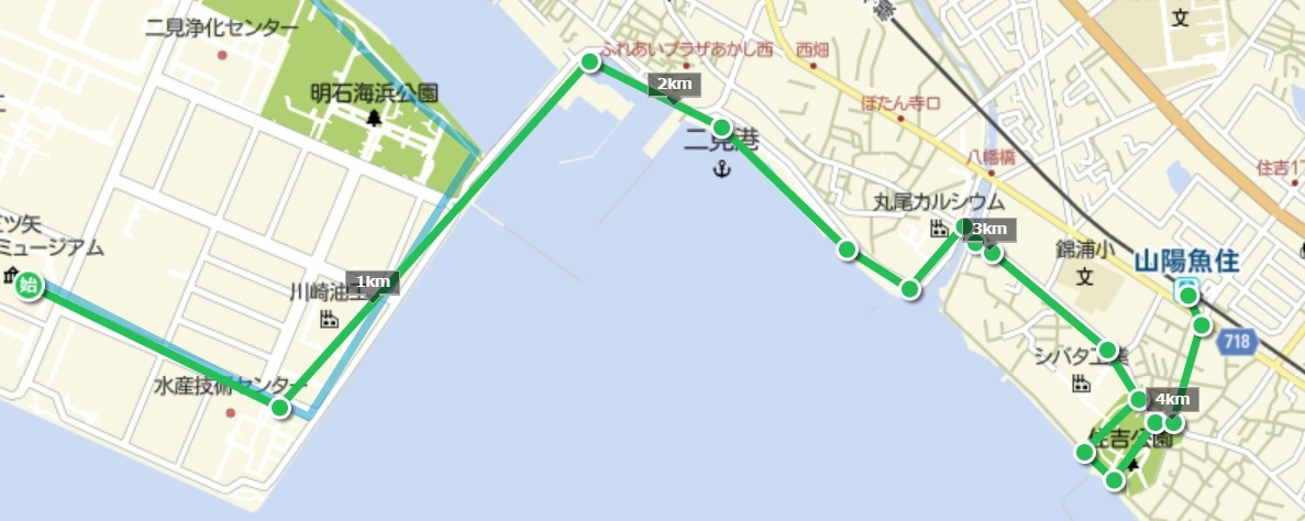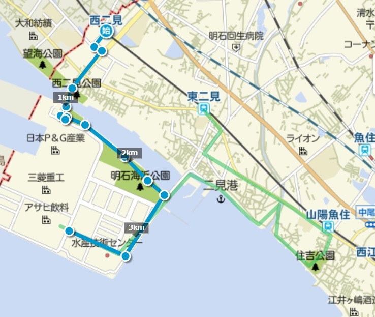 工場~二見港~茨木酒造~住吉公園~山陽魚住駅=4.3km