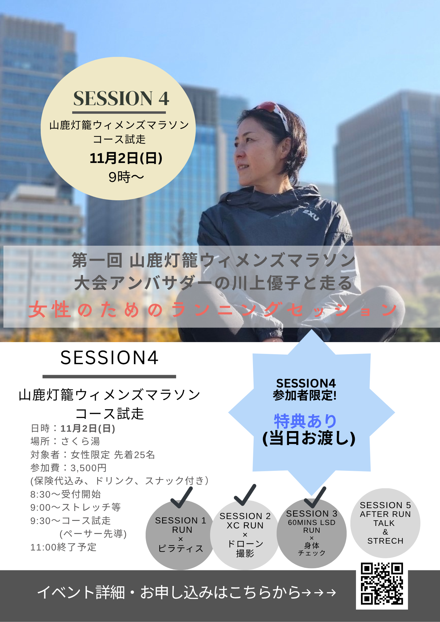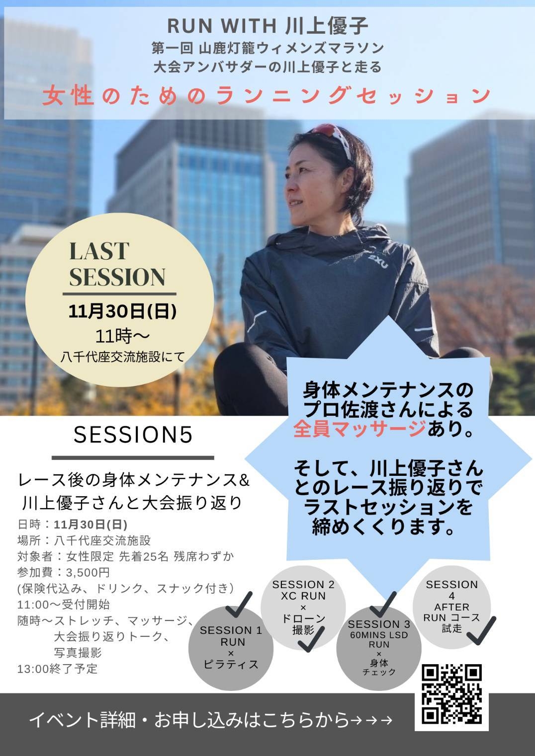 このイベントは、無事に終了しました。沢山の女子ランナーの皆さまに出会えて本当に嬉しかったです。ありがとうございました。