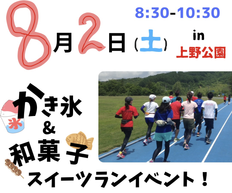 2025年8月02日(土) 8:30〜10:30 in上野公園 かき氷&和菓子スイーツランイベント‼︎ 開催が決定いたしました‼︎? 頑張ったあとのかき氷や甘いもの、とても身体に染みると思います✨ 暑くて走れない、ランナー仲間を増やしたいそんな方にオススメです! 初心者ランナー様大歓迎です? ¨¨¨¨¨¨¨¨¨¨¨¨¨¨¨¨¨¨¨¨¨¨¨¨¨¨¨¨¨¨¨¨¨ 練習内容:60分ロングジョグ(LSD) +坂道ダッシュ ※こまめに休憩をとります。 10:00になりましたら、 [新鶯亭]へ移動します? ¨¨¨¨¨¨¨¨¨¨¨¨¨¨¨¨¨¨¨¨¨¨¨¨¨¨¨¨¨¨¨¨¨ 2025/08/02(土)雨天中止 集合場所:JR上野駅公園口改札前 集合時間:8:30 参加費:¥2,000 ※飲食代別途です。 持ち物:飲み物、走れる格好、タオル ⚠️帽子があるといいです⚠️ 貴重品:各自管理でお願いいたします。
