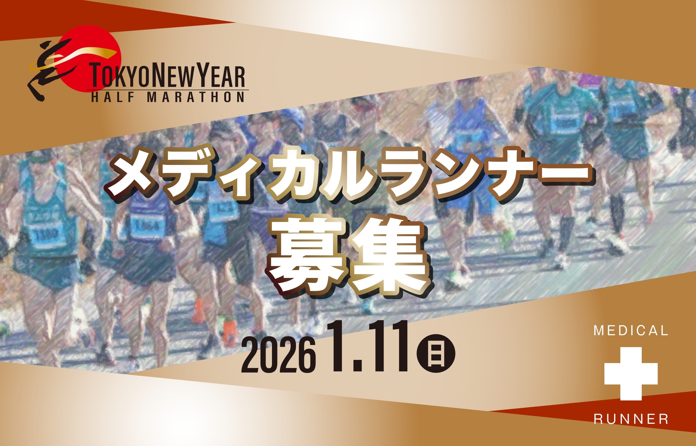 東京ニューイヤーハーフマラソン2026(第26回ハイテクハーフマラソン)では、より安心・安全な大会運営を目指し、医療従事者等の皆様にご参加いただいて、レース走行中に万が一、他のランナーの健康上重大な事象に遭遇した場合に初期対応に当たっていただける「メディカルランナー」を募集します。(無料)
