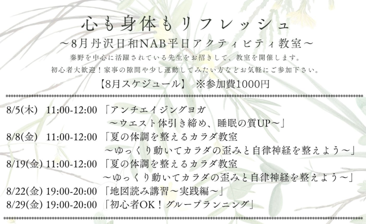 心も身体もリフレッシュ! 〜丹沢日和NAB平日アクティビティ教室2025年8月〜 受付終了