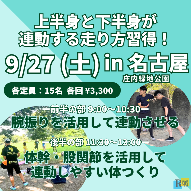 前半後半の2部開催!上半身と下半身が連動した滑らかな走りを身につけよう!
