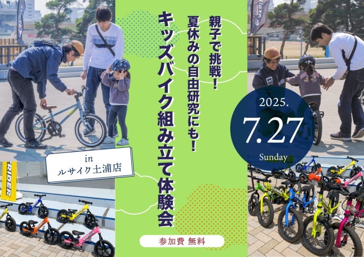 親子で挑戦!夏休みの自由研究にも!「キッズバイク組み立て体験会 inルサイク土浦店」 受付終了