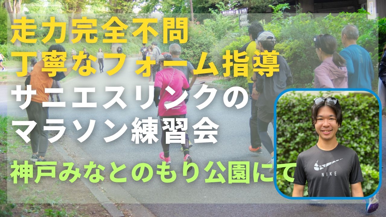 関東ですでに実績のある走力完全不問のランニングクラブ、サニエスリンクです。安心の練習システム、身体の仕組みをうまく使った専門的なストレッチやエクササイズ、フォーム指導に定評があります。今まで関東エリアをメインに練習会を運営していましたが、2025年9月より、神戸市みなとのもり公園でも練習会を新規スタートしました!ぜひ体験にお越しください!