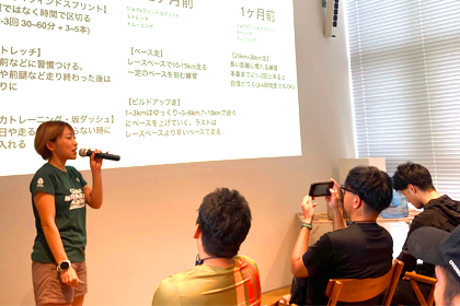 さらに、THE NORTH FACEスタッフよりマラソンお薦めアイテムの紹介など、本番に向けた準備はこの練習会に参加しておけば間違いなしです!