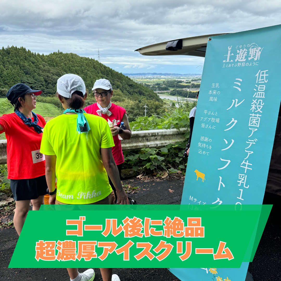 アイスクリームはこだわりの素材を使ったヘルシーな商品ですので、素材にもこだわっています。アデア牧場の自家製牛乳を使用し、添加物や人工成分は使用していません。まろやかで美味しいと評判です。ゴール後に提供いたします!