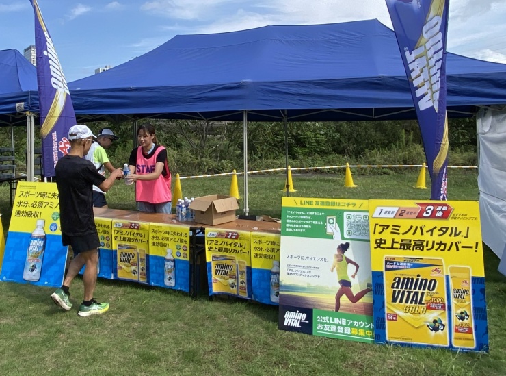 フィニッシュしたランナーへフィニッシュドリンクの配布を行います。