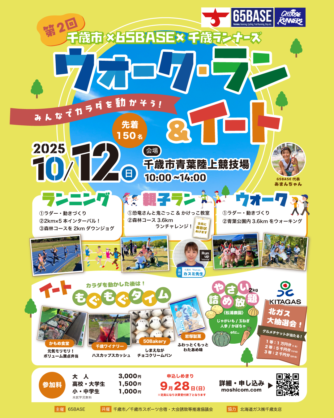 第2回★千歳市×65BASE!先着150名★みんなでカラダを動かそう!ウオーク・ラン&イート! 受付終了