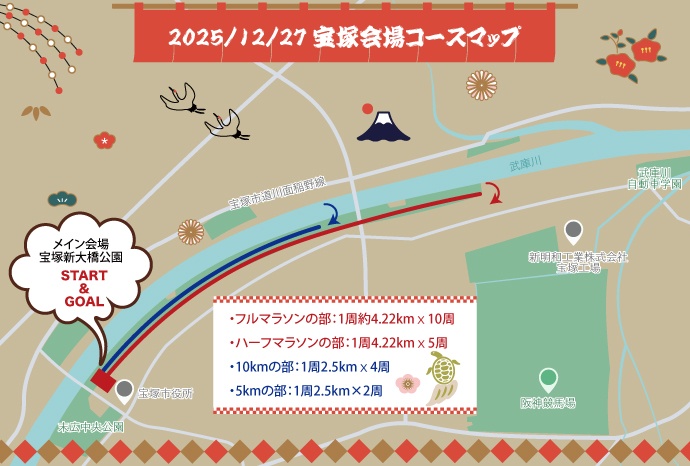 ・5kmの部:1周2.5km×2周(片道1.25km)