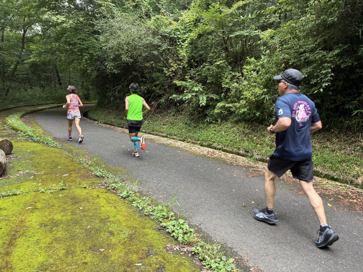 暑さや日差しを極力軽減できるランニングコースで距離、時間を伸ばす工夫が必要です。この生駒ボルダーコースはほとんど日陰で標高400m~550mです。秋以降のフルマラソンの脚のスタミナの土台づくりにつながる練習会です。