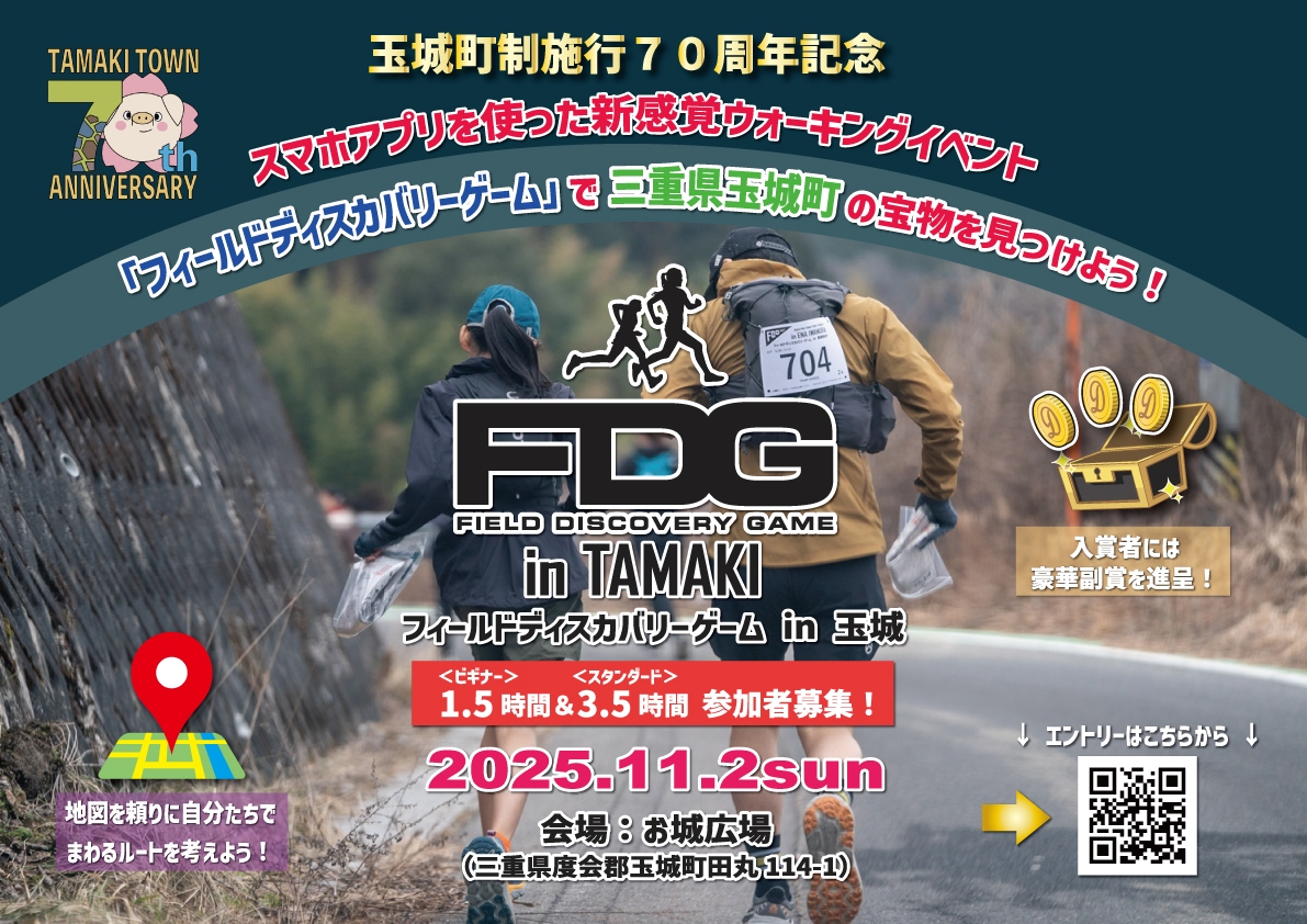 FDG(フィールドディスカバリーゲーム)は専用アプリを用い、歴史遺産に設定されたスポットを巡り、制限時間内に得られたスコアで順位を競います。伊勢神宮への参拝客が集まる宿場町として栄えた玉城町。知られざる玉城町の魅力を発見しよう!各カテゴリー3位まで表彰、豪華副賞あり!
