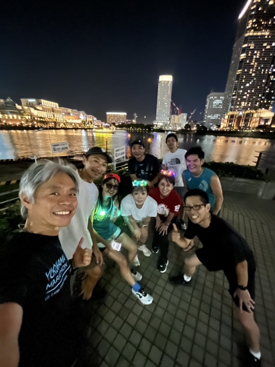 コースはゆっくりとしたペースで設定され、初めてランニングイベントに参加する人や夏の暑さに不安を感じる人でも安心して参加できました。横浜のきらめく夜景が美しい背景となり、走りながら写真を撮ったり、会話を楽しんだりする時間は、参加者同士の絆を深める機会となりました。