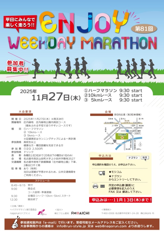 休日の予定が合わない方にぴったり!毎月平日に開催中!リピート率が高く、毎回たくさんのランナーにご参加いただいています♪