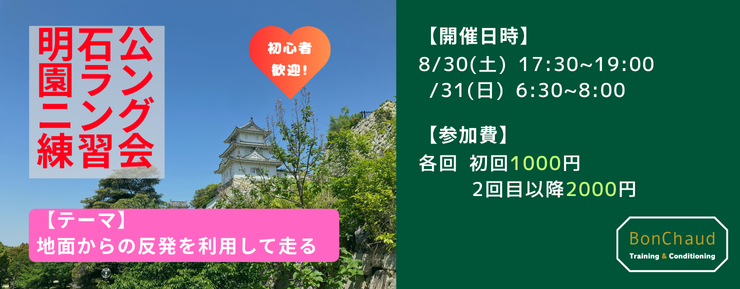 明石の山陽電鉄西新町駅前にあるパーソナルトレーニングジムBonChaud(ボンショウ)が主催するランニングイベントです。