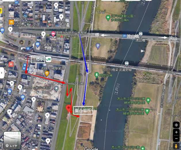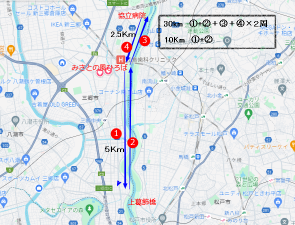 風ひろばスタート→川下へ→上葛飾橋手前(5Km)折り返し