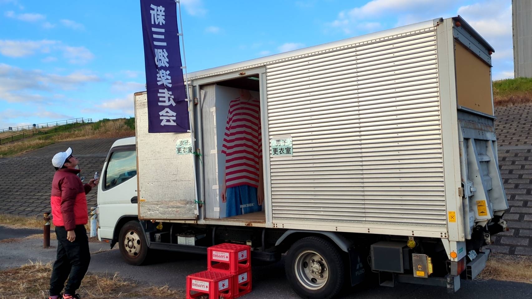 手荷物 手荷物預かり用のトラックを用意します(みさとの風ひろば下河川敷)