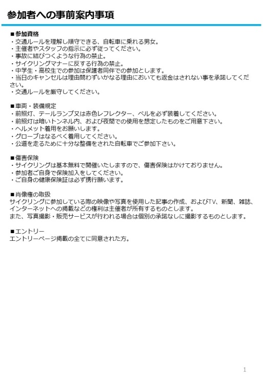 全て自己責任を了承できる方及び自転車保険又は該当する保険加入の方