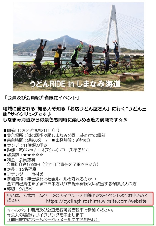 cycling.hiroshima@gmail.com、090-1686-0708 - イベントID