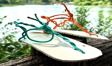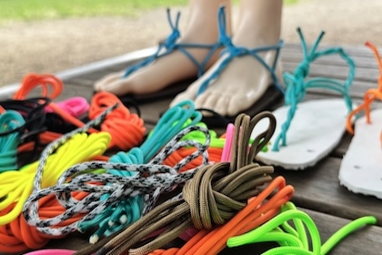 - ソール(サンダル底)に、自分の好きな色や硬さの紐(主にパラコード)を結んで、サンダルを作ります。