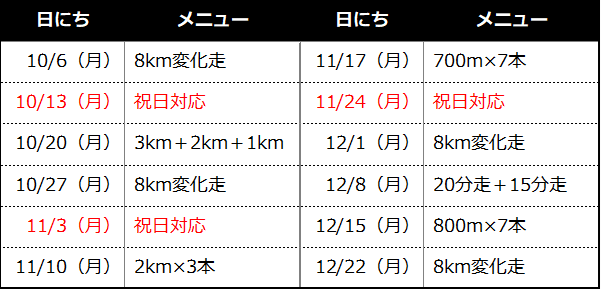 ▶対象:フルマラソンサブ3~4時間30分目標の方(現在の走力は問いません)