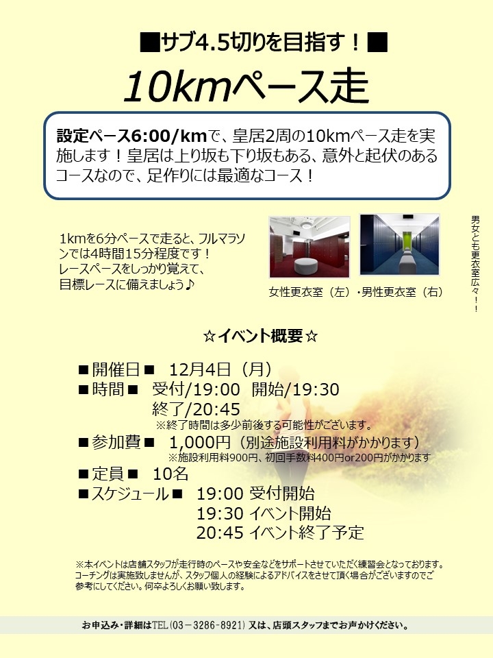 【サブ4.5切りを目指す方向け】10kmペース走 受付終了