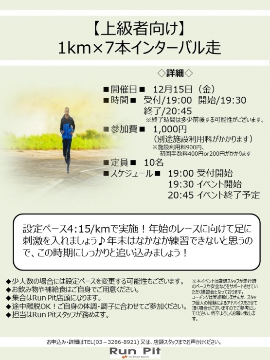 【上級者向け】1km×7本インターバル走 受付終了