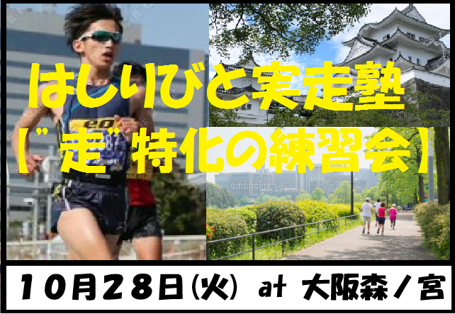 - 一般(大学生以上):10/28【森ノ宮/火曜ナイト】はしりびと実走塾『1kmインターバル走』 :