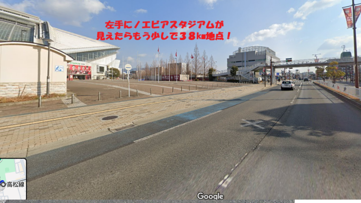 *左手にノエビアスタジアムが見えたら残り約5km!
