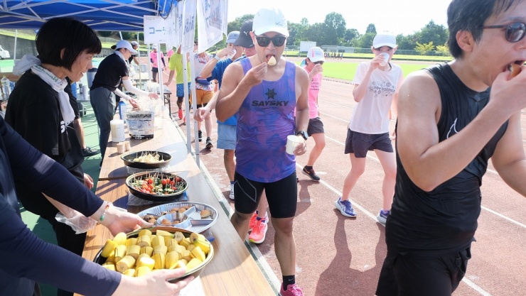 ・スポラエイド名物の冷たい”梨”をはじめ、充実したエイドステーション