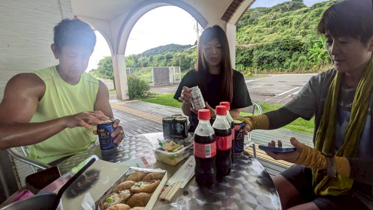 折り返しのエイドポイントでは休憩しながら交流タイムも!マラニックの醍醐味ですね!
