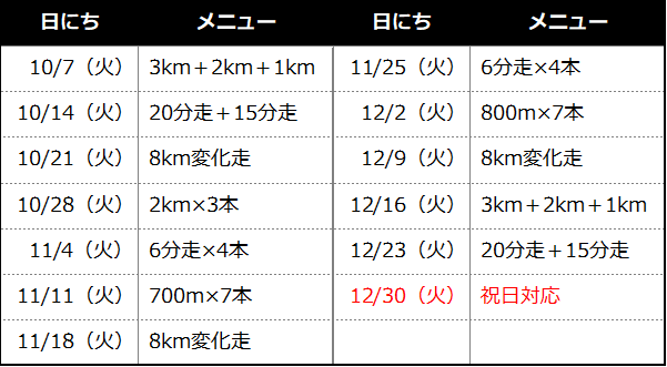 練習メニュー詳細はモシコムカレンダー開催日の商品ページからご確認ください。