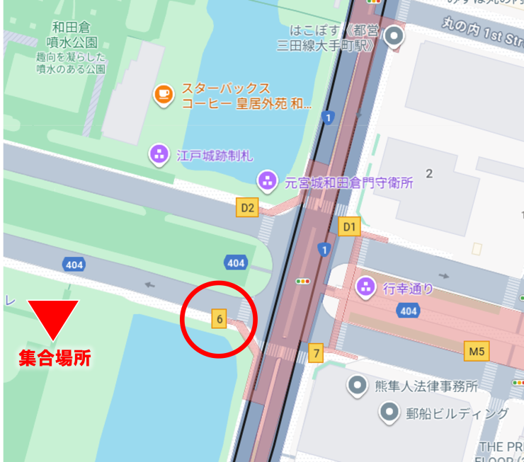 7:40頃より交通規制が始まります。道路の横断が規制されている場合もありますので地下通路6番出口から地上に上がると集合場所の最寄りとなります。