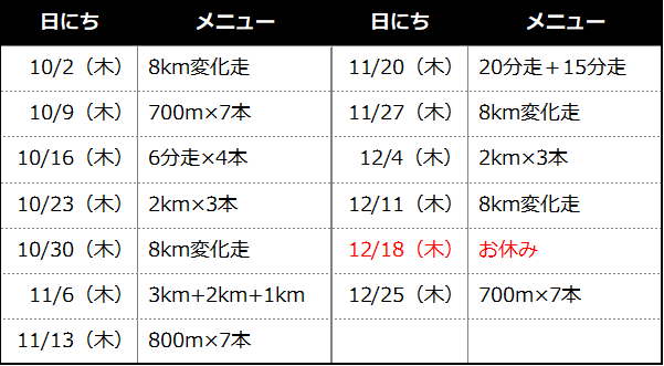 ※キロ4分より速い方やキロ5分を大きく超える方は距離は速度を別途調整します。